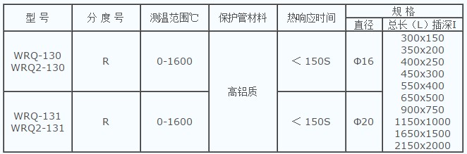 鉑銠13-鉑(R型熱電偶)為貴金屬熱電偶。偶絲直徑規(guī)定為0.5mm,允許偏差-0.015mm,其正極(RP)的名義化學(xué)成分為鉑銠合金,其中含銠為13%,含鉑為87%,負(fù)極(RN)為純鉑,長期最高使用溫度為1300℃,短期最高使用溫度為1600℃。